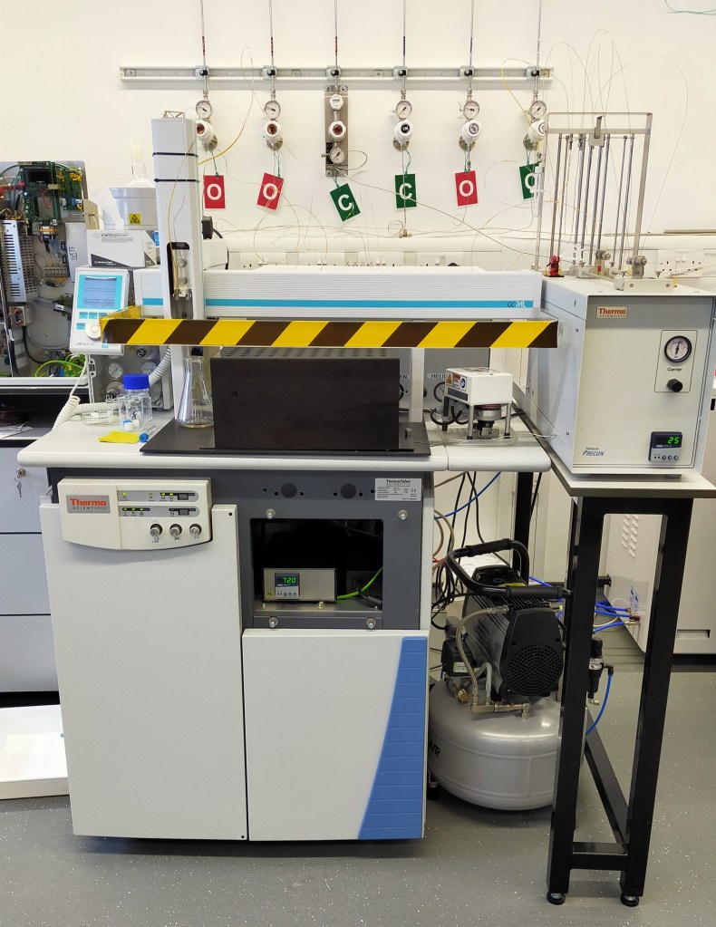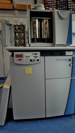 For stable isotope measurements, the lab is equipped with a Thermo Delta V Advantage Gas Source IRMS, interfaced with a ConFlo IV, and Gasbench II on-line gas preparation system (aka Dr Octopus).