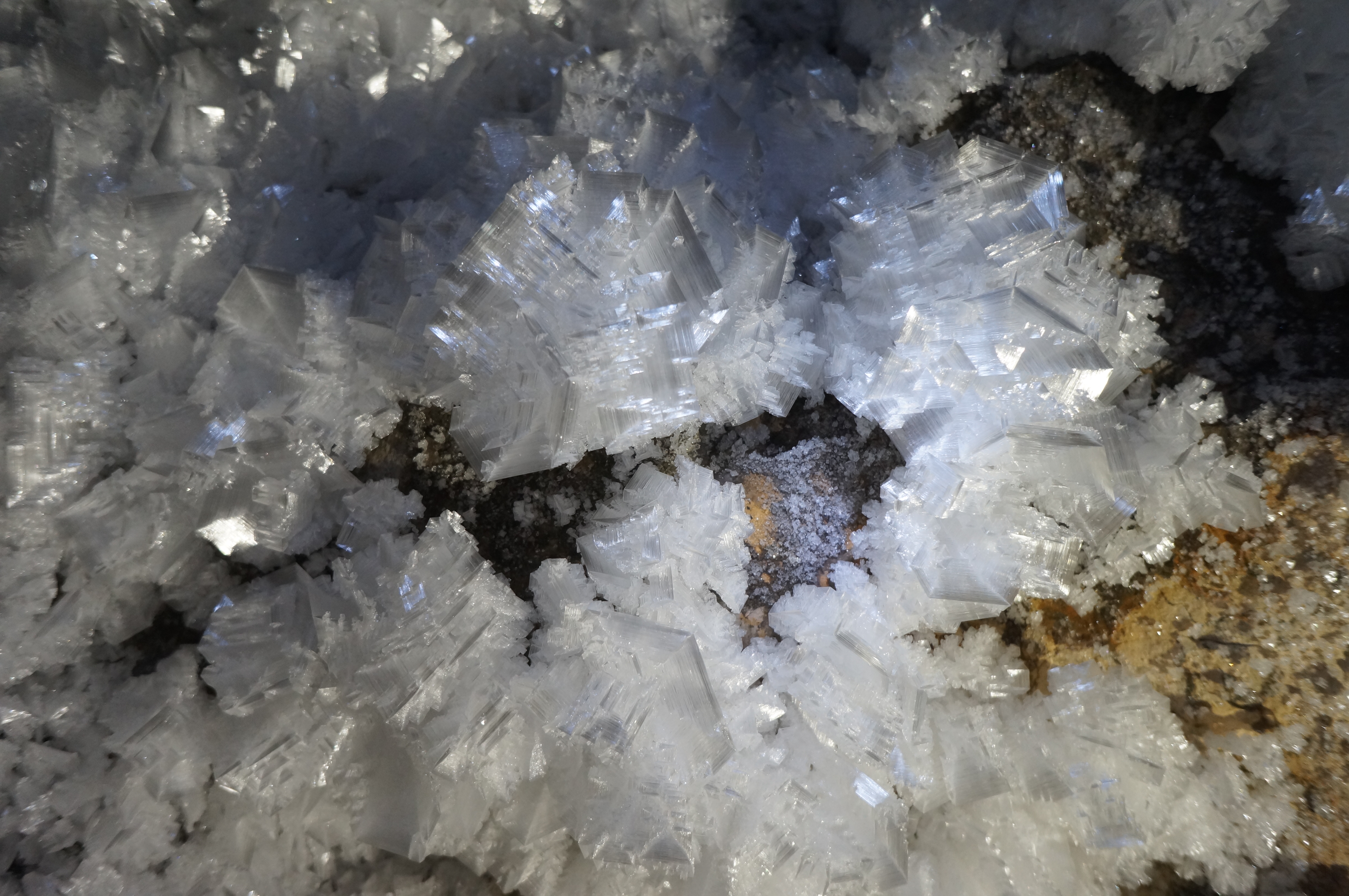 The next day I was able to enter a cave for the first time. Zuun Khargant’s cave was meant to be a ‘warm-up’ for us, a small horizontal cave not far from Hatgal. It was a cave everyone could go into, a place to get some practice in scrabbling and crawling, and to experience what it was like to conduct scientific work while lying on your belly in freezing mud. We didn’t expect much, but it turned out to hold some incredible surprises: ribbons of cave bacon, an enormous actively-growing flowstone, and crystalline geodes in the walls. We emerged triumphant three hours later, with plenty of samples and even more excitement. This was one of our first stops, just one small cave in a land full of caves. If we had met such success in Zuun Khargant’s, how much more must there be to find?
