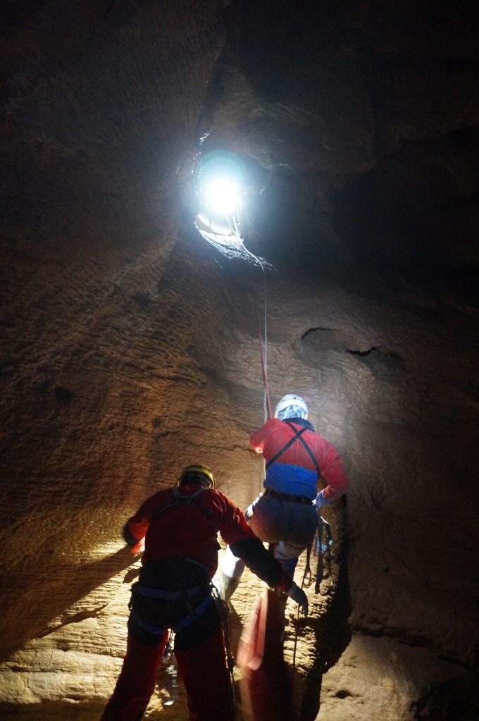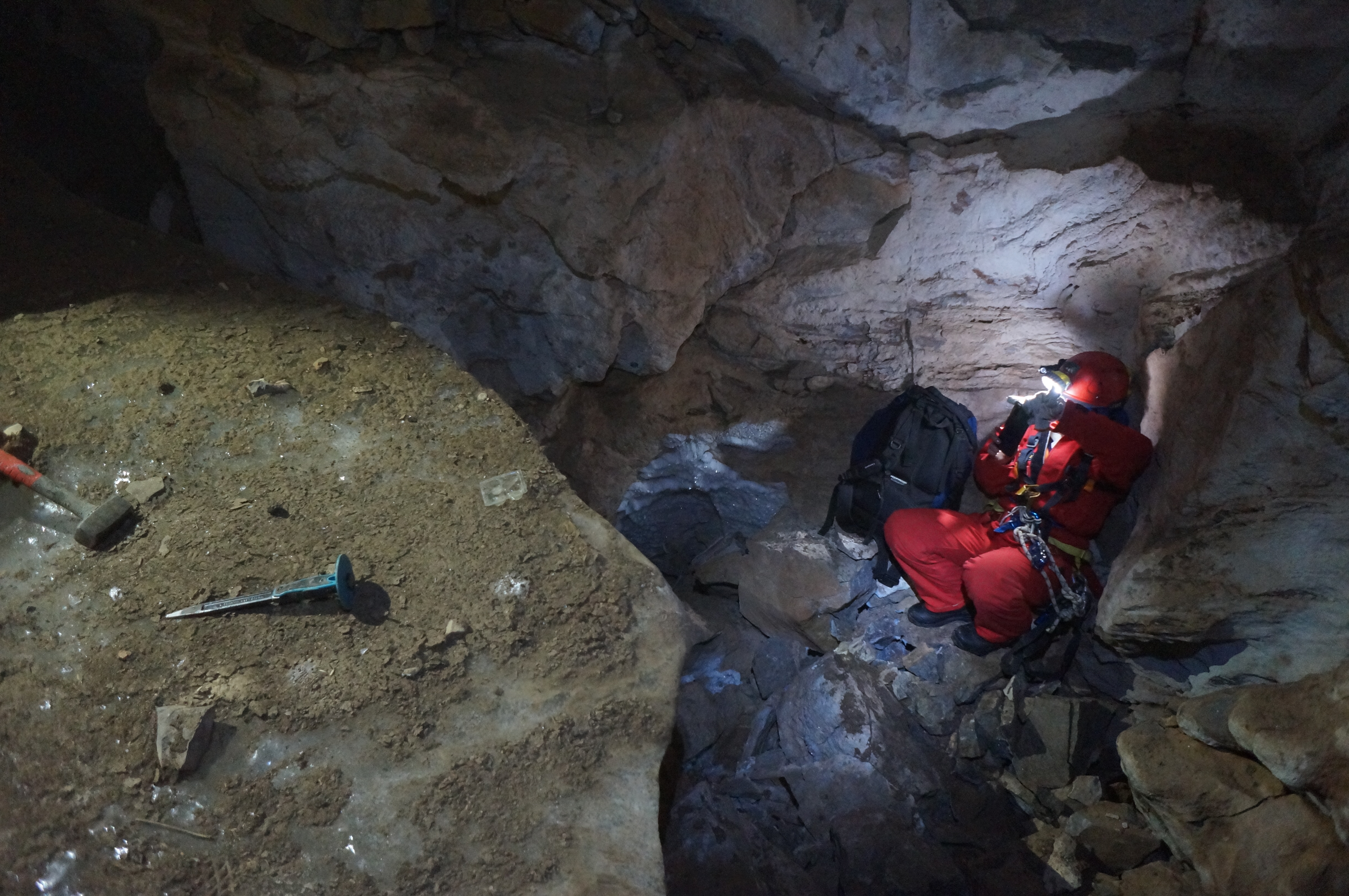 It’s important for us to sample as many caves in the region as possible as this allows us to build up a picture of spatial variations in palaeo-permafrost extent and sample different time periods that might not have been available at a single cave. Argarakan is a very different beast to Botovskaya. Entering the cave requires a ten metre abseil into the abyss below, where it opens to several chambers on different levels, transcending up to 90 metres in depth.