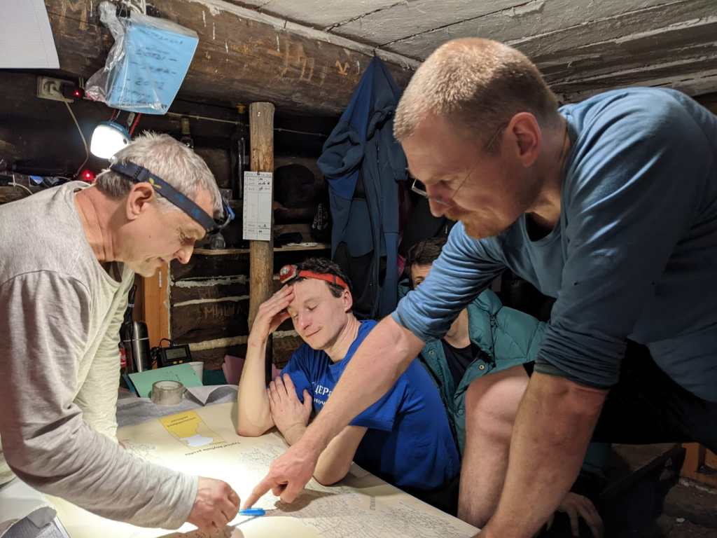 The camp consists of two sleeping huts with fireplaces and dining tables, as well as a traditional Russian Banya, or sauna, in which we can wash and relax. The huts were originally built by Siberian berry foragers who would use them as a base to explore the nearby taiga forest. They were abandoned some time in the 1990s and adopted some 20 years ago by our colleagues at Speleoclub Arabika who have worked tirelessly to turn them into warm, comfortable accommodation that would be our home for the next eight days.