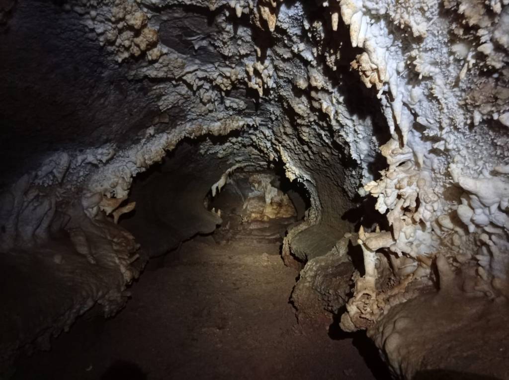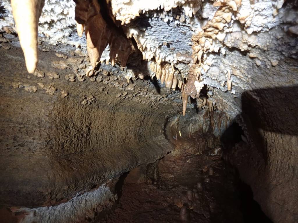 Jade, ISOPERM’s PhD student, got sent on a special mission to install an autosampler. This homemade piece of equipment collects water samples over a set timeframe so that we can monitor how the composition of cave dripwaters changes over time. This can help us interpret the isotopic records of our carbonate samples which form from the dripwaters. Our Speleoclub Arabika colleagues knew just the spot to install the autosampler – where drip rates were unusually high. Yet to get there, Jade had to spend two nights in the cave, sleeping in an underground camp. An amazing adventure considering Botovskaya was her first time inside a cave!