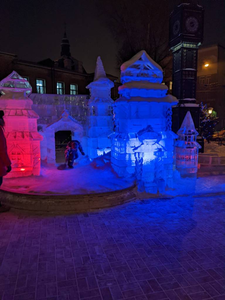 The evening was spent exploring Irkutsk – it’s a charming, prosperous, city. After some fun seeing ice sculptures (including an ice playground for kids!) we sampled the local cuisine. If you ever find yourself in Siberia, you must try buza – a meat filled dumpling, sort of like an extra filling dim sum.