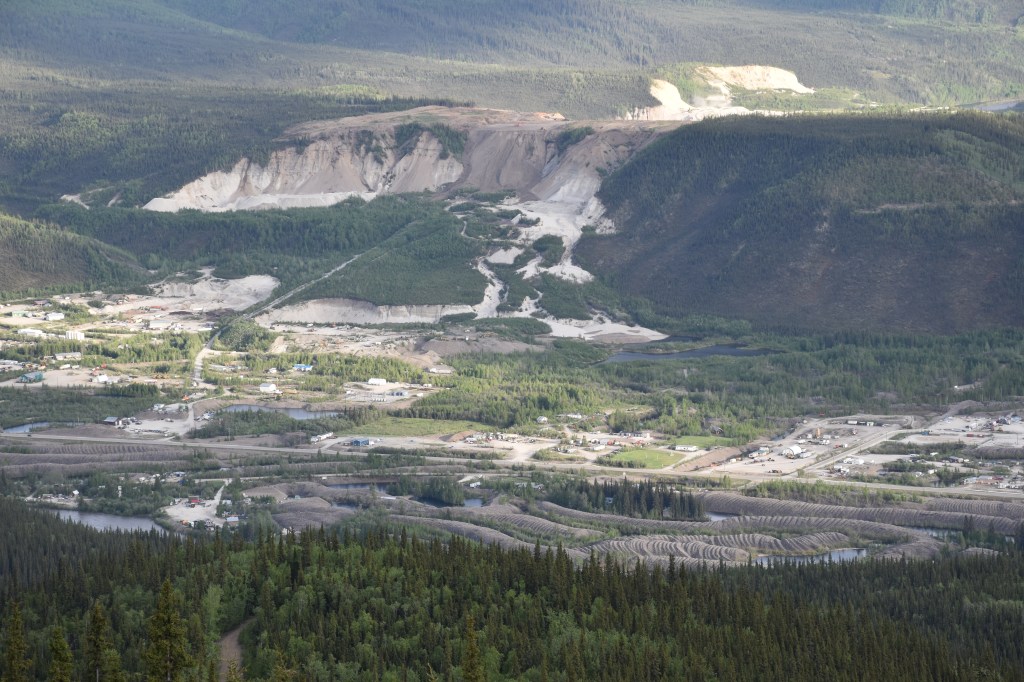 On June 6, we went by plane back to Whitehorse, where the frozen samples were stored and we prepared for the next part of the expedition. The next morning, we loaded the rental car, replenished our food supplies, and headed out on the Klondike Highway to Dawson City where we set up our headquarters for the next week. Dawson City is known as the center of the Klondike gold rush at the end of the 19th century. Traces of gold mining (especially the later industrial gold mining using dredges) are still clearly visible today around Dawson and the Klondike area. Even today, gold is still being mined.