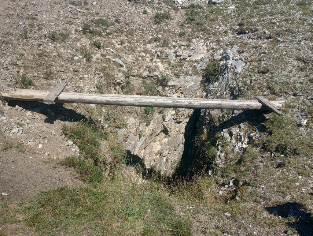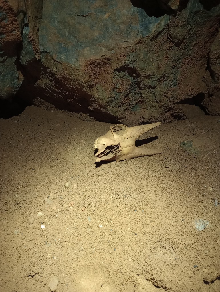 Our first cave of the expedition was Orkhot cave. We’d heard rumours that the cave was used by locals for the disposal of animal carcasses, so our most experience caving partners went in first, while the rest of the team explored the landscape above. It was here, as I sheltered from a thunderstorm in our buhanka, that a herd of goats descended from the mountain and enveloped us. In my haste to stop them drinking from the rainwater collection pans we’d set out, I stumbled over the peculiar little hummocks that lined the valley bottom. I had seen them in textbooks before, but never in person– and only one day into our trip, I realised I’d stumbled into a well-known feature of the permafrost landscape. I’d thought I was too far south to encounter modern permafrost, yet here they were. Our Mongolian team set about digging and sure enough, discovered that modern permafrost lay just beneath the surface.
